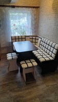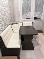 Кухонный уголок с мягкой обивкой из кожзама.