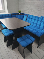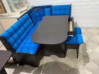 Угловой кухонный диван со столом и банкетками.