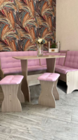 Стол, 2 табурета и угловая скамья. Разные цвета обивки и каркаса.