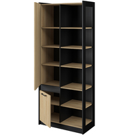 Современный шкаф со стеллажом. Черно-бежевая расцветка.