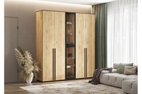 Шкаф распашной «Марвэл» 4-х дв высота 240 с доп ящиками (дуб крафт золотой - браш графит)