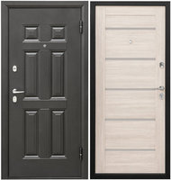 Замки (2 шт.): Верхний - сувальдный "ПРОМЕТ", 3 ригеля 16 мм, РФ (2-й класс взломостойкости); Нижний - цилиндровый (ключ-вертушка) "ПРОМЕТ", 3 ригеля 16 мм, РФ (4-й класс взломостойкости).